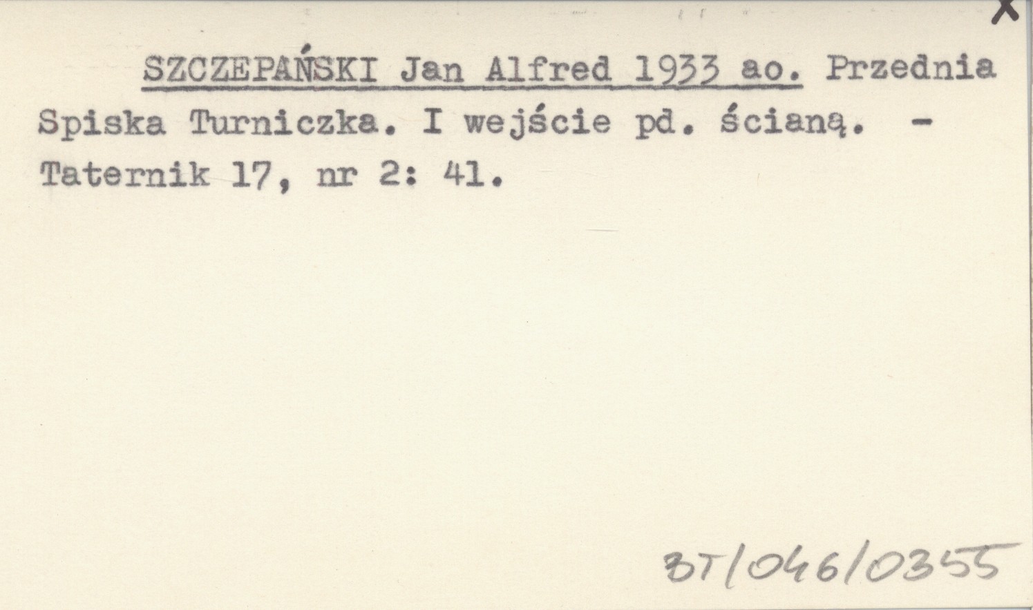 SZCZEPAŃSKI Jan Alfred 1933 ao Przednia Spiska Turniczka. I wejście pd. ścianą.