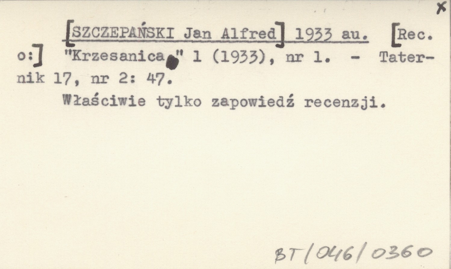 [SZCZEPAŃSKI Jan Alfred] 1933 au [Rec. o:] "Krzesanica" 1 (1933), nr 1.