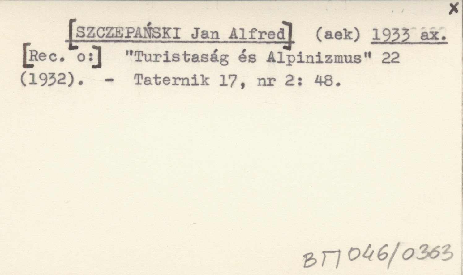 (aek) [SZCZEPAŃSKI Jan Alfred] 1933 ax [Rec. o:] "Turistaság és Alpinizmus" 22 (1932).