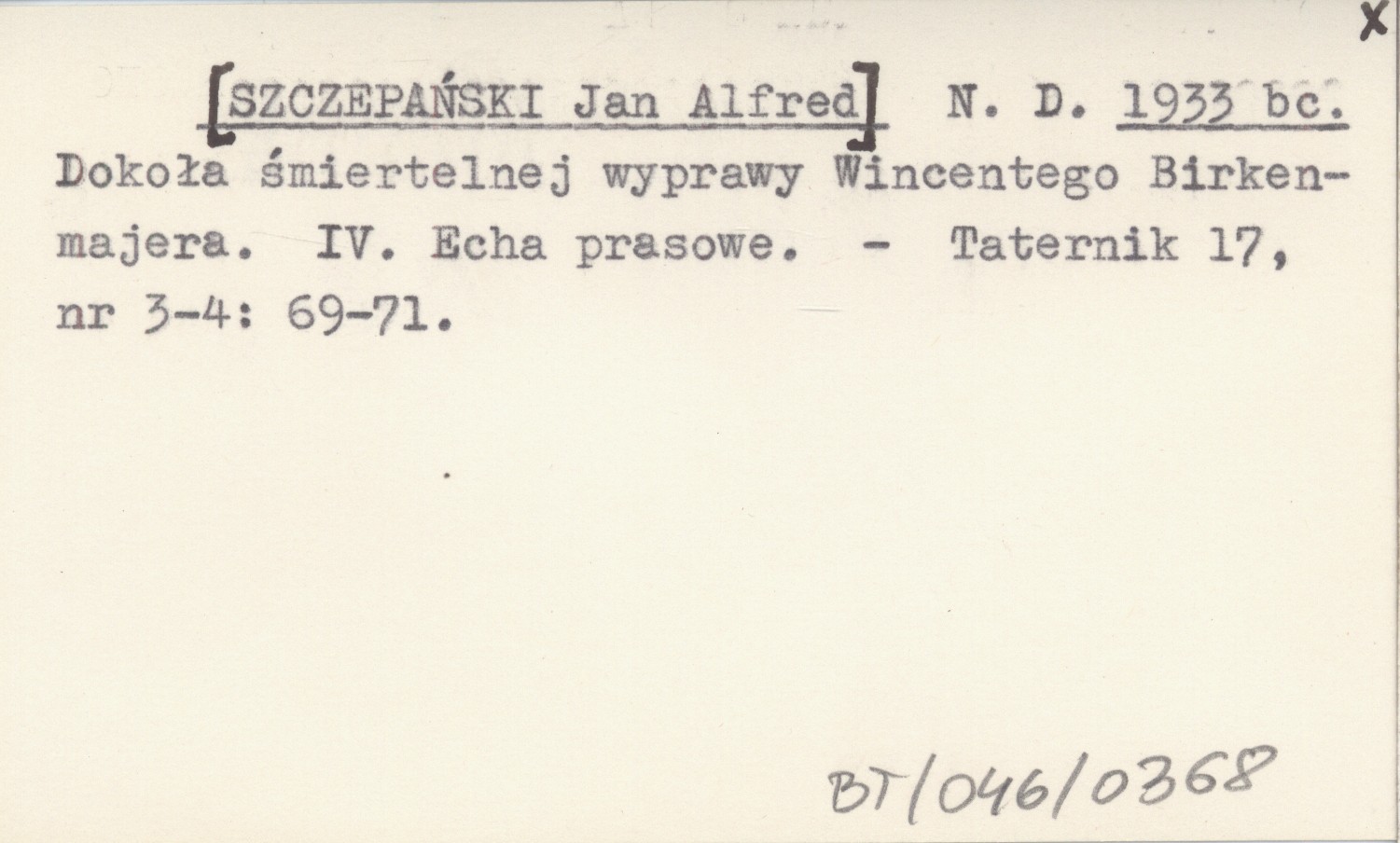 N. D. [SZCZEPAŃSKI Jan Alfred] 1933 bc Dokoła śmiertelnej wyprawy Wincentego Birkenmajera. IV. Echa prasowe.