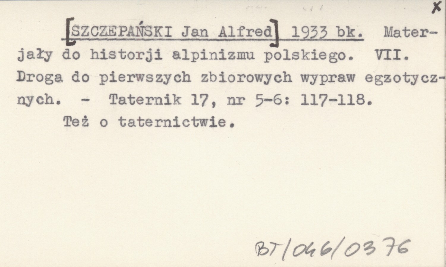 [SZCZEPAŃSKI Jan Alfred] 1933 bk Materjały do historji alpinizmu polskiego. VII. Droga do pierwszych zbiorowych wypraw egzotycznych.