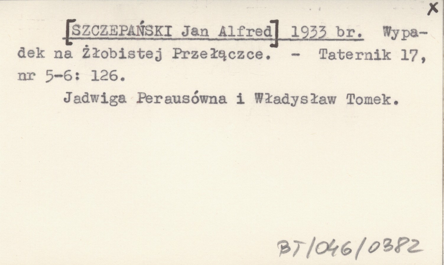 [SZCZEPAŃSKI Jan Alfred] 1933 br Wypadek na Żłobistej Przełączce.