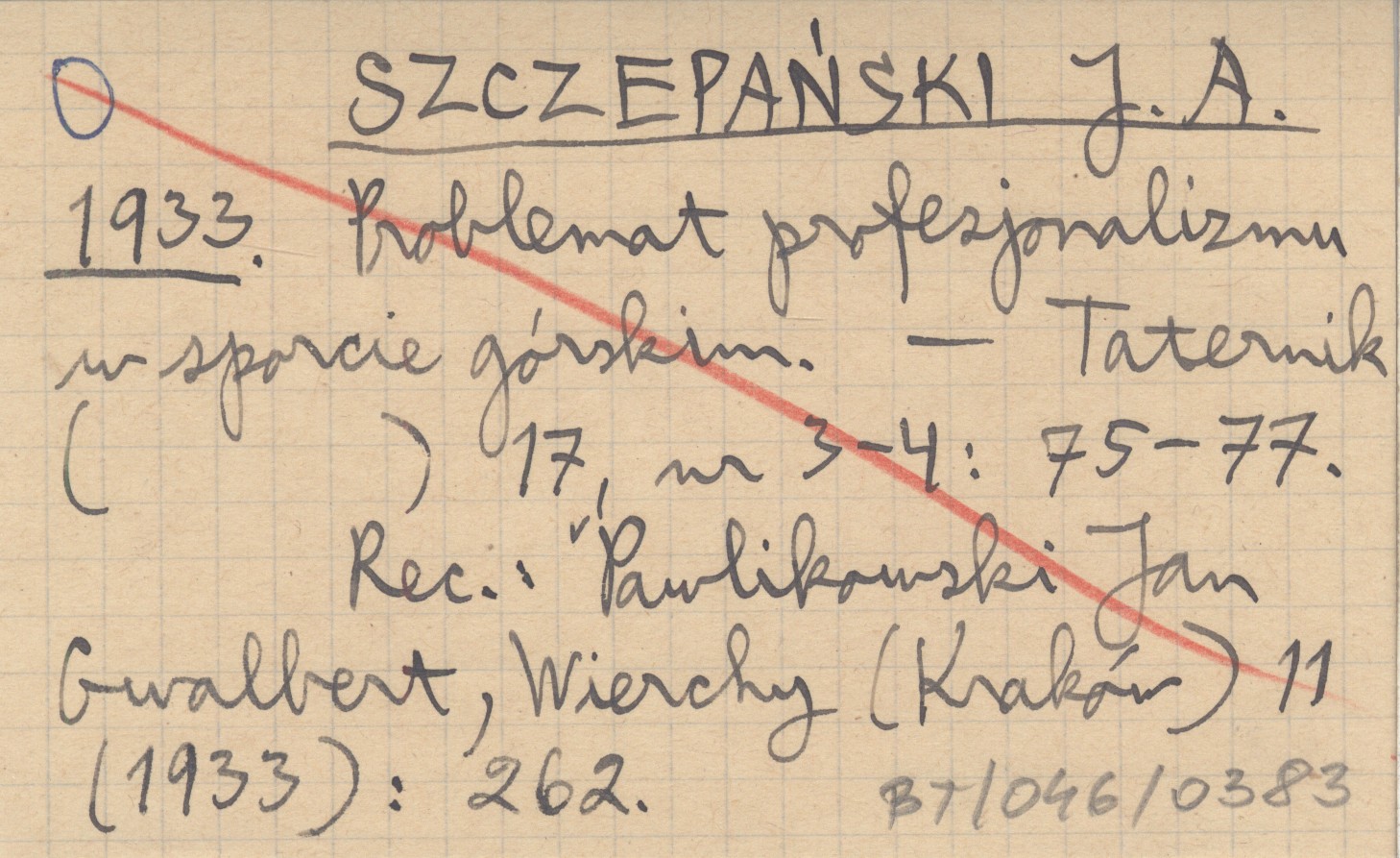 Taternik, 17, nr 3-4: 75-77. REC: PAWLIKOWSKI Jan Gwalbert, Wierchy (Kraków) 11 (1933): 262.