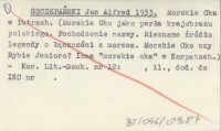 SZCZEPAŃSKI Jan Alfred 1933 Morskie Oka w Tatrach. (Morskie Oko jako perła krajobrazu polskiego. Pochodzenie nazwy. Nieznane źródło legendy o łączności z morzem. Morskie Oko czy Rybie Jezioro? Inne "morskie oka" w Karpatach).