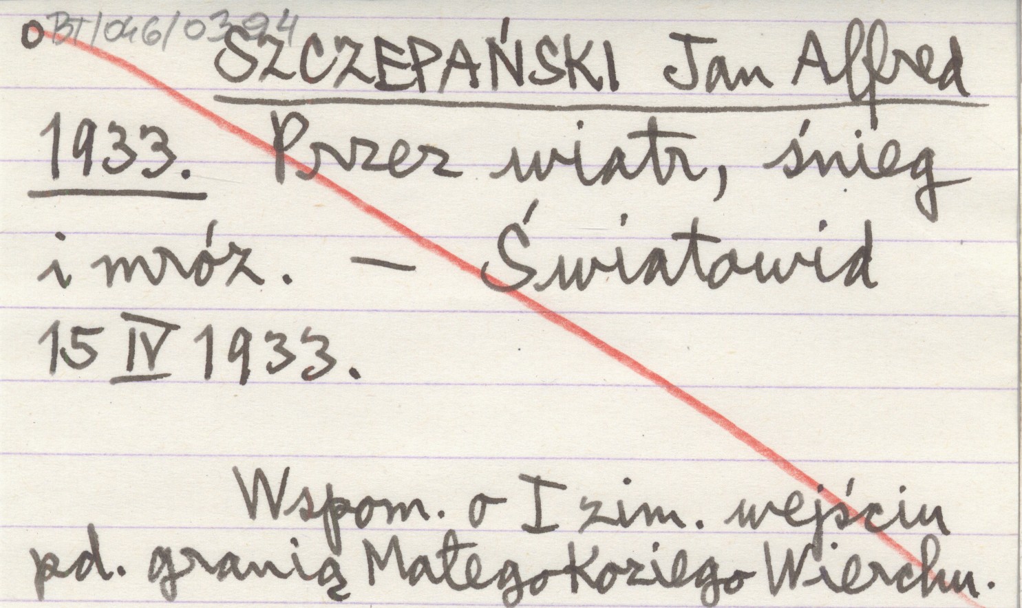 Światowid, 15 IV 1933. Wspomnienie o I zimowym wejściu pd. granią Małego Koziego Wierchu.