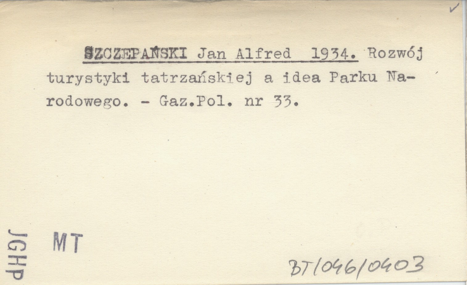 SZCZEPAŃSKI Jan Alfred 1934 Rozwój turystyki tatrzańskiej a idea Parku Narodowego.