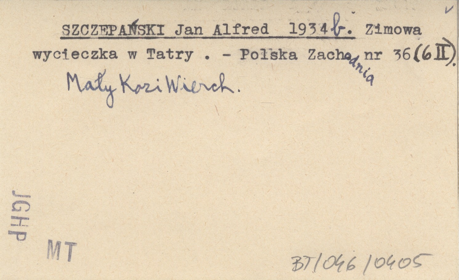 Polska Zachodnia, Nr 36 (6 II). Mały Kozi Wierch.