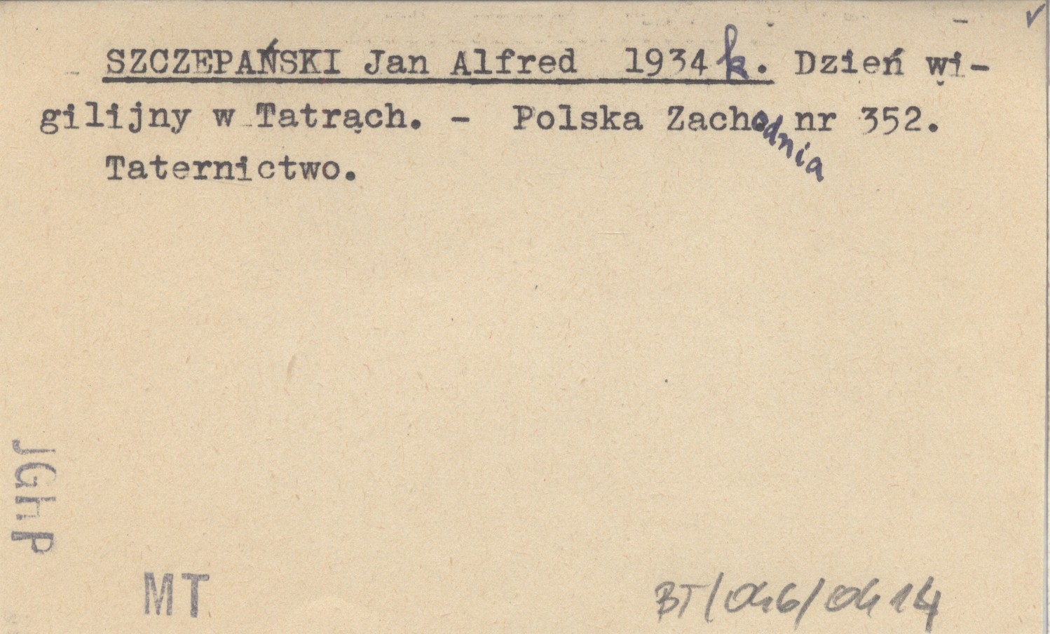 Polska Zachodnia, Nr 352. Taternictwo.