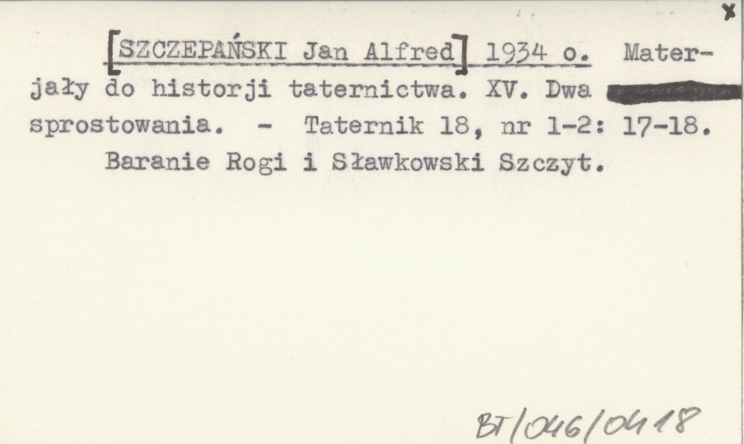 [SZCZEPAŃSKI Jan Alfred] 1934 o Materjały do historji taternictwa. XV. Dwa sprostowania.