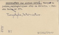 J. A. Szcz. [SZCZEPAŃSKI Jan Alfred] 1934 i O przewodnik po Tatrach.
