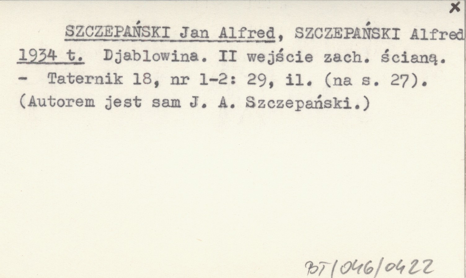 SZCZEPAŃSKI Jan Alfred SZCZEPAŃSKI, Alfred. ; 1934 t Djablowina. II wejście zach. ścianą.