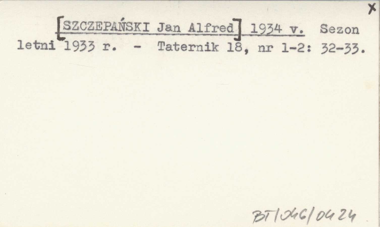 [SZCZEPAŃSKI Jan Alfred] 1934 v Sezon letni 1933 r.