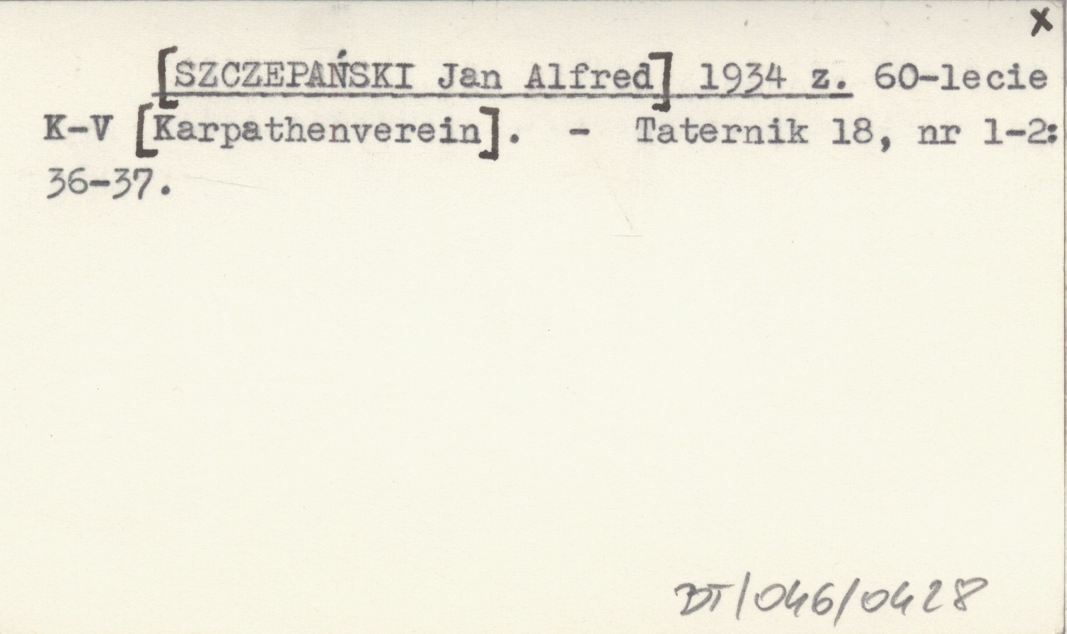 [SZCZEPAŃSKI Jan Alfred] 1934 z 60-lecie K-V [Karpathenverein].
