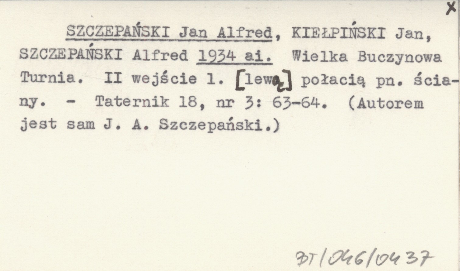 SZCZEPAŃSKI Jan Alfred KIEŁPIŃSKI, Jan. ; SZCZEPAŃSKI, Alfred. ; 1934 ai Wielka Buczynowa Turnia. II wejście 1. [lewą] połacią pn. ściany.