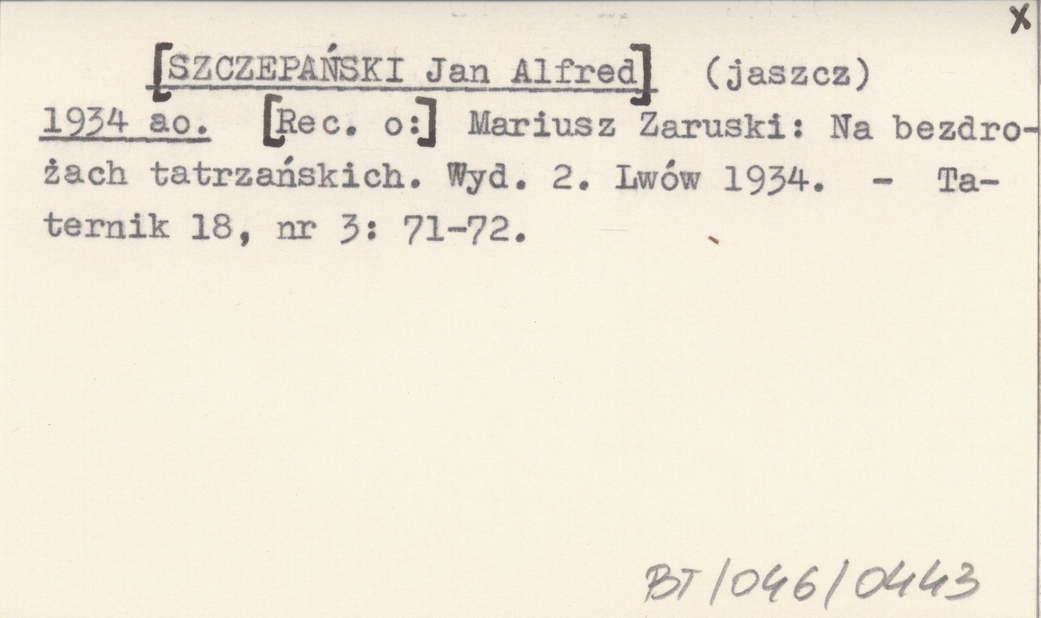 (jaszcz) [SZCZEPAŃSKI Jan Alfred] 1934 ao [Rec. o:] Mariusz Zaruski: Na bezdrożach tatrzańskich. Wyd. 2 Lwów 1934.