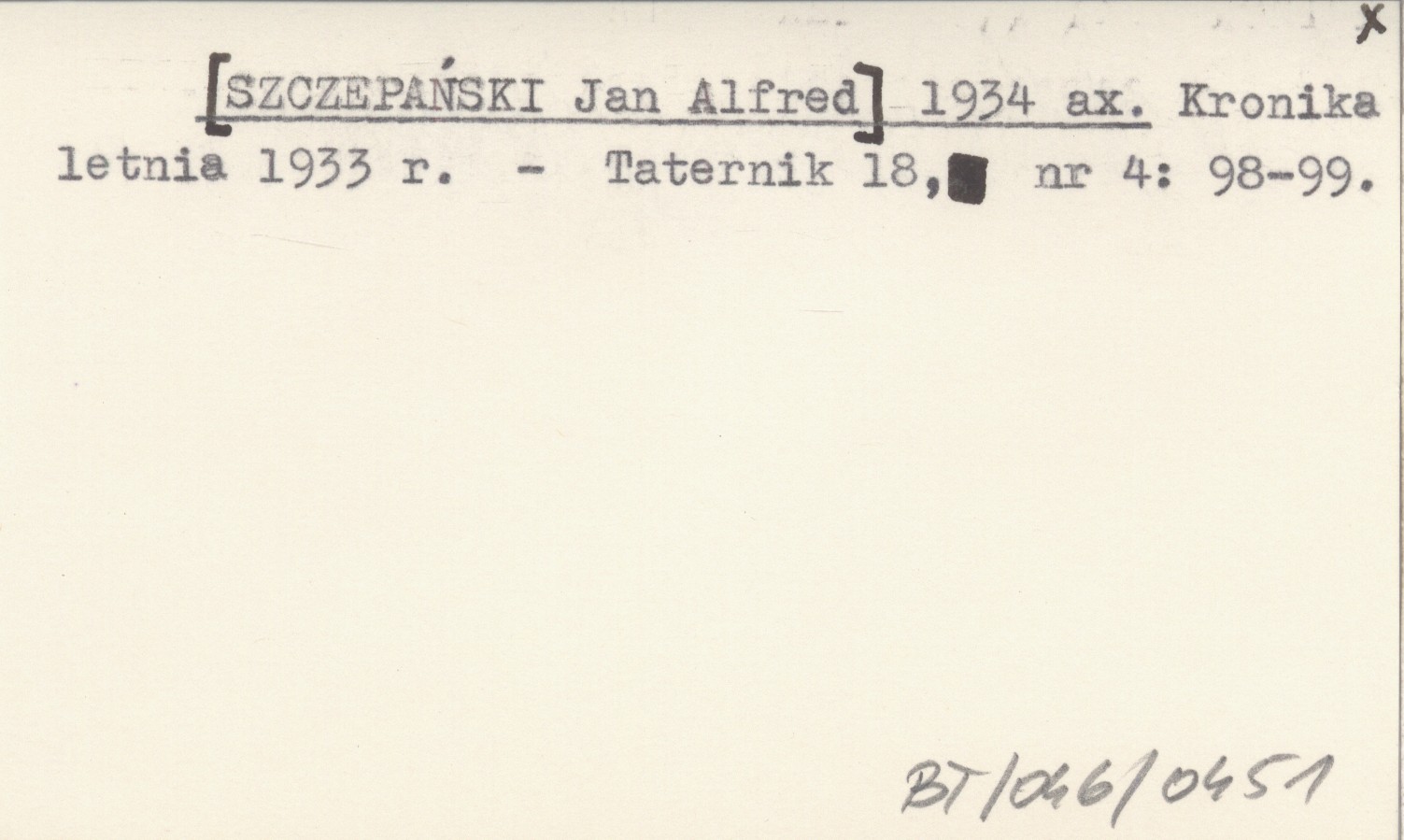 [SZCZEPAŃSKI Jan Alfred] 1934 ax Kronika letnia 1933 r.