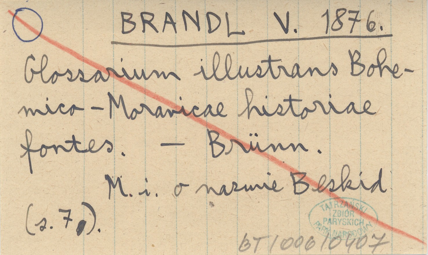 BRANDL V. 1876 Glossarium illustrans Bohemico-Moravicae historiae fontes.
