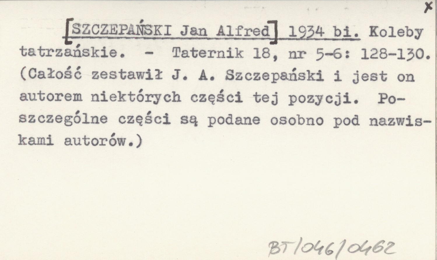 Taternik, 18, nr 5-6: 128-130. Całość zestawił J. A. Szczepański i jest on autorem niektórych części tej pozycji. Poszczególne części są podane osobno pod nazwiskami autorów.