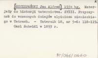 [SZCZEPAŃSKI Jan Alfred] 1934 bg Materjały do historji taternictwa. XVIII. Przyczynek do wczesnych dziejów alpinizmu niemieckiego w Tatrach.