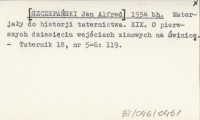 [SZCZEPAŃSKI Jan Alfred] 1934 bh Materjały do historji taternictwa. XIX. O pierwszych dziesięciu wejściach zimowych na Świnicę.