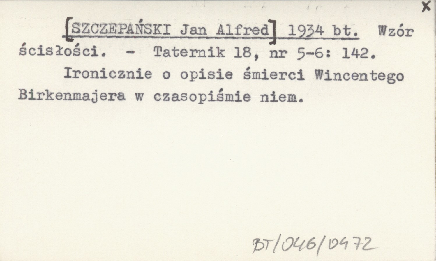 Taternik, 18, nr 5-6: 142. Ironicznie o opisie śmierci Wincentego Birkenmajera w czasopiśmie niemieckim.