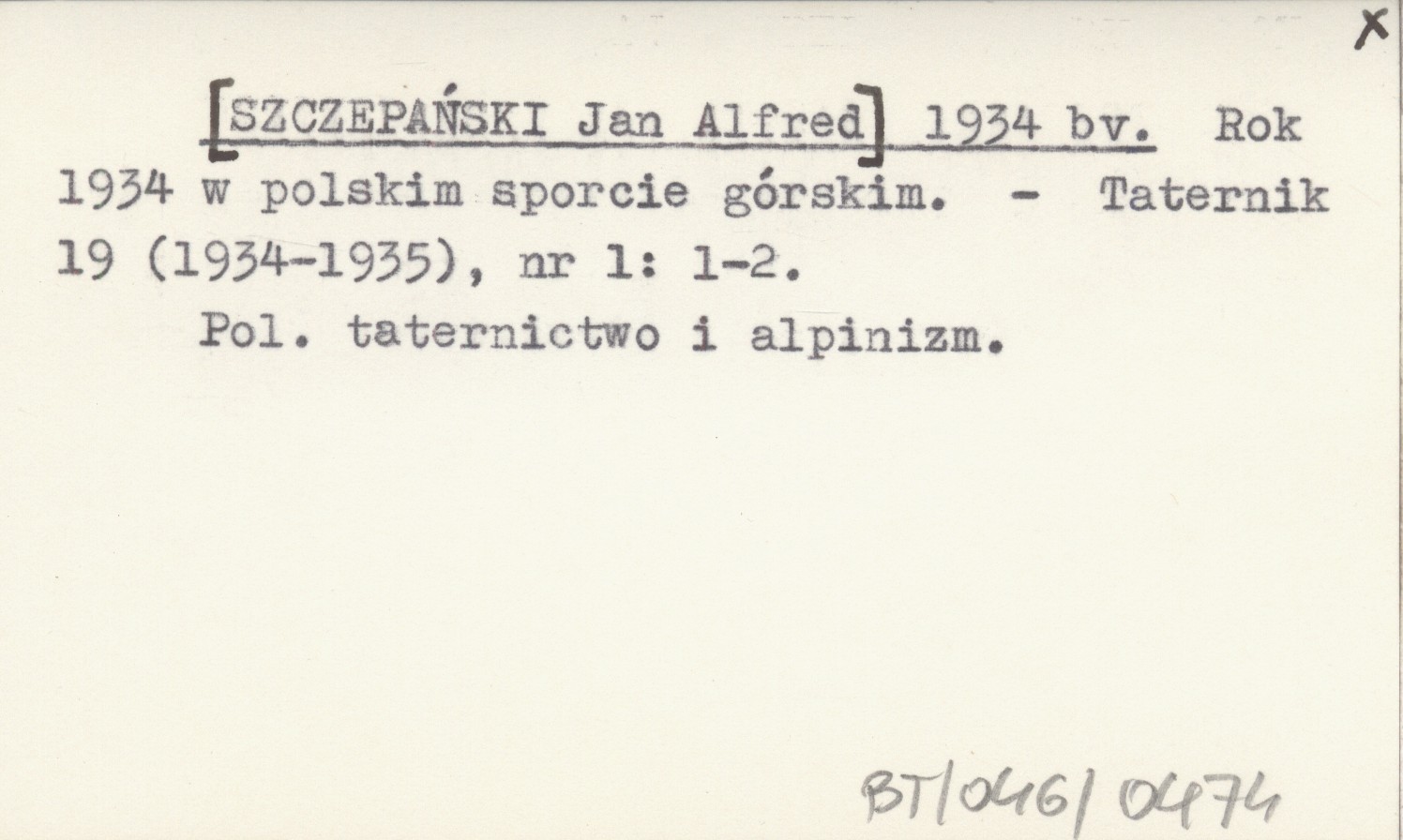 [SZCZEPAŃSKI Jan Alfred] 1934 bv Rok 1934 w polskim sporcie górskim.