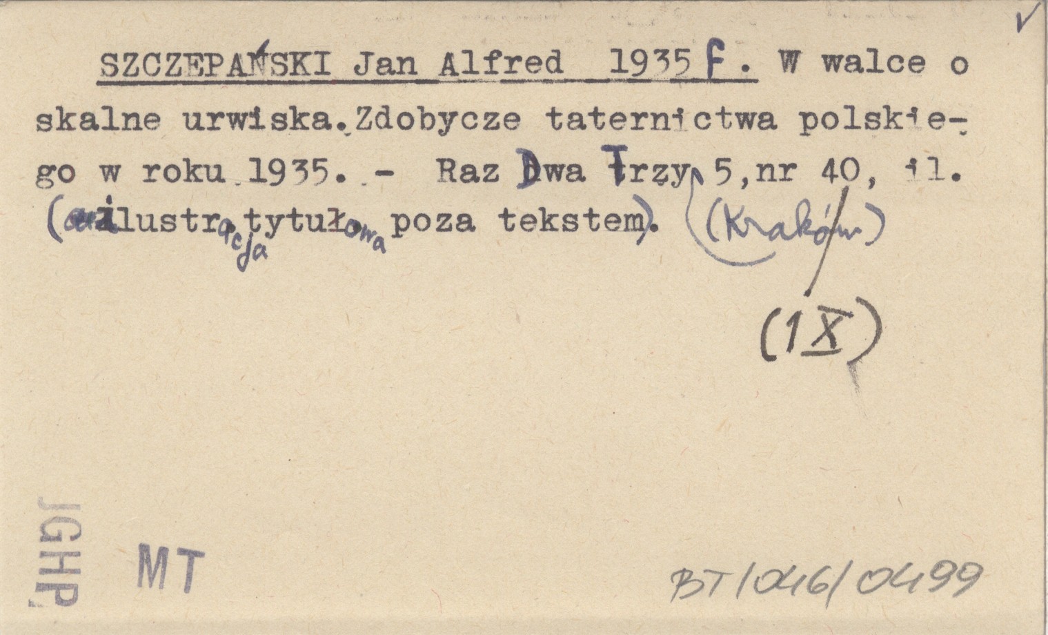 SZCZEPAŃSKI Jan Alfred 1935 f W walce o skalne urwiska. Zdobycze taternictwa polskiego w roku 1935.