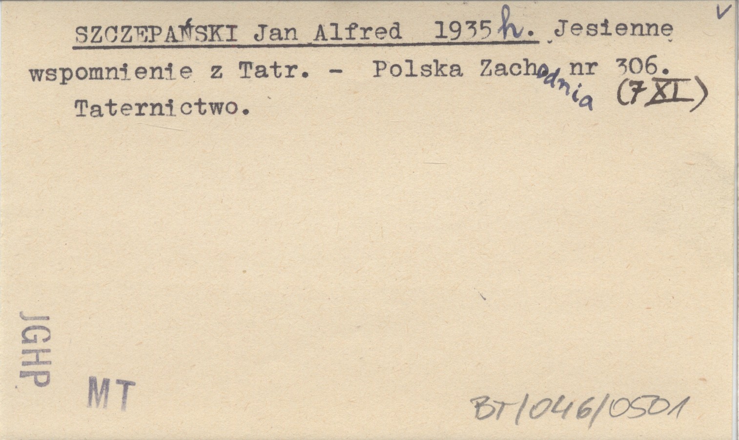 SZCZEPAŃSKI Jan Alfred 1935 h Jesienne wspomnienie z Tatr.