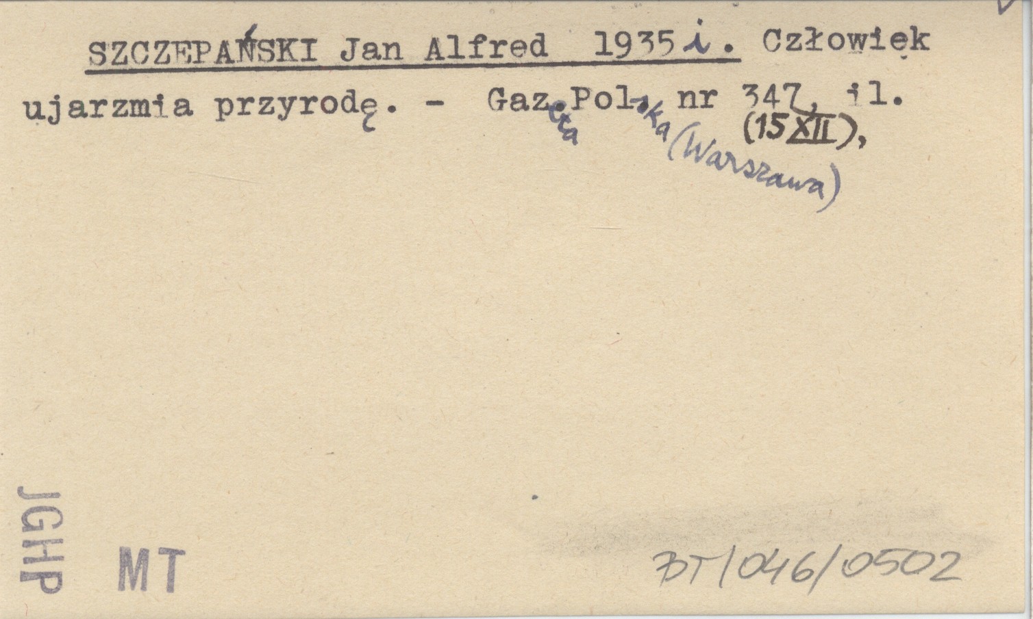 SZCZEPAŃSKI Jan Alfred 1935 i Człowiek ujarzmia przyrodę.