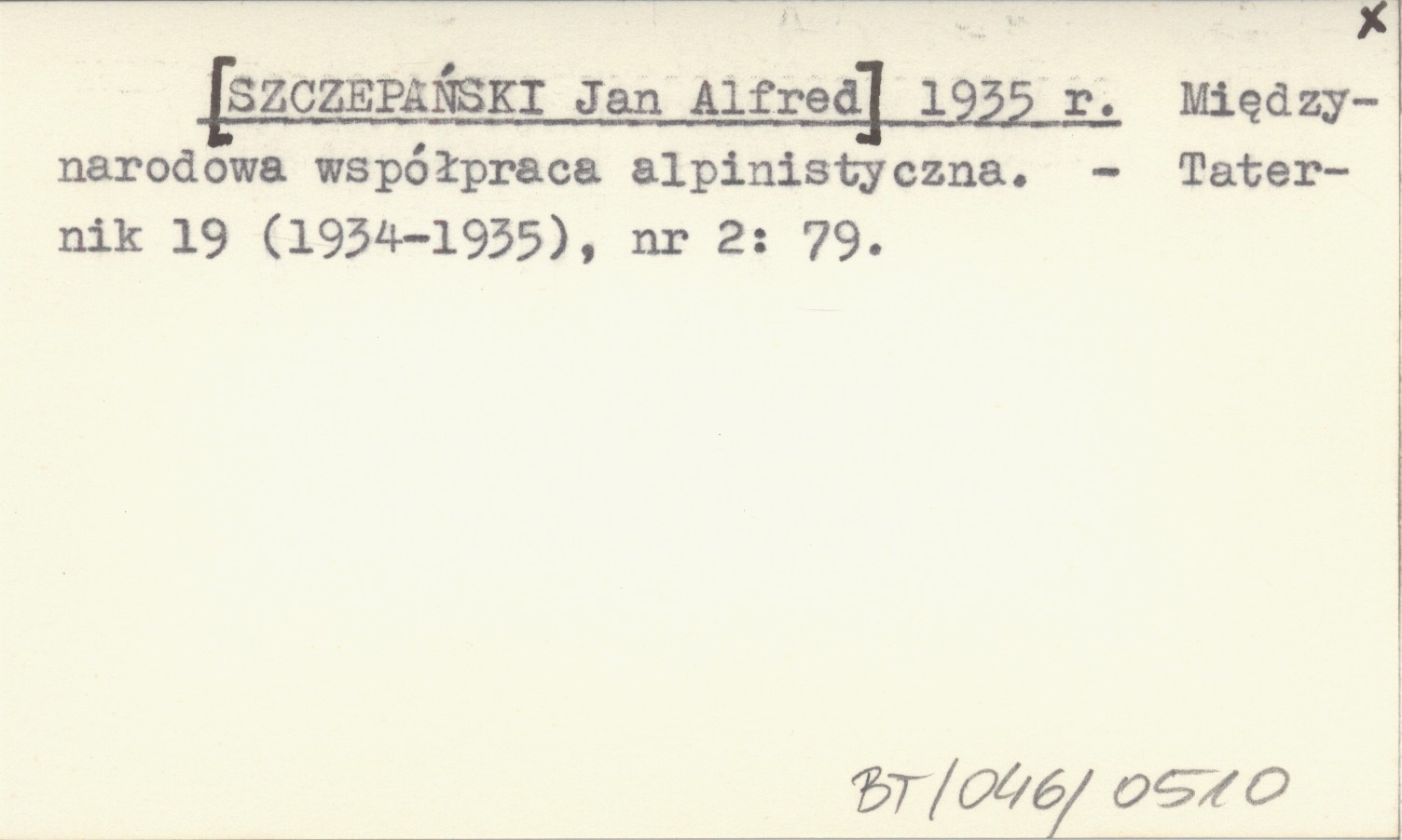 [SZCZEPAŃSKI Jan Alfred] 1935 r Międzynarodowa współpraca alpinistyczna.