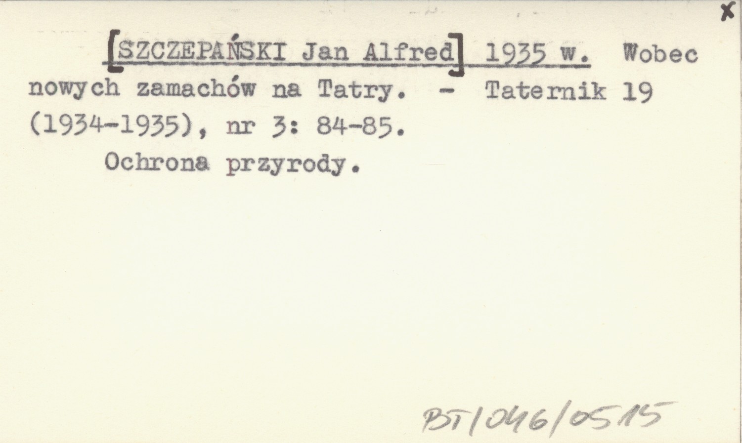 [SZCZEPAŃSKI Jan Alfred] 1935 w Wobec nowych zamachów na Tatry.
