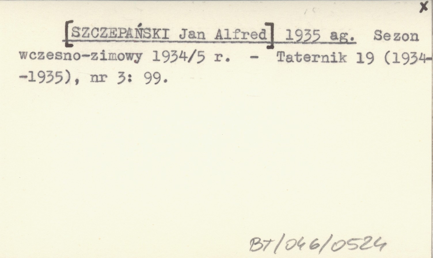 [SZCZEPAŃSKI Jan Alfred] 1935 ag Sezon wczesno-zimowy 1934/5 r.