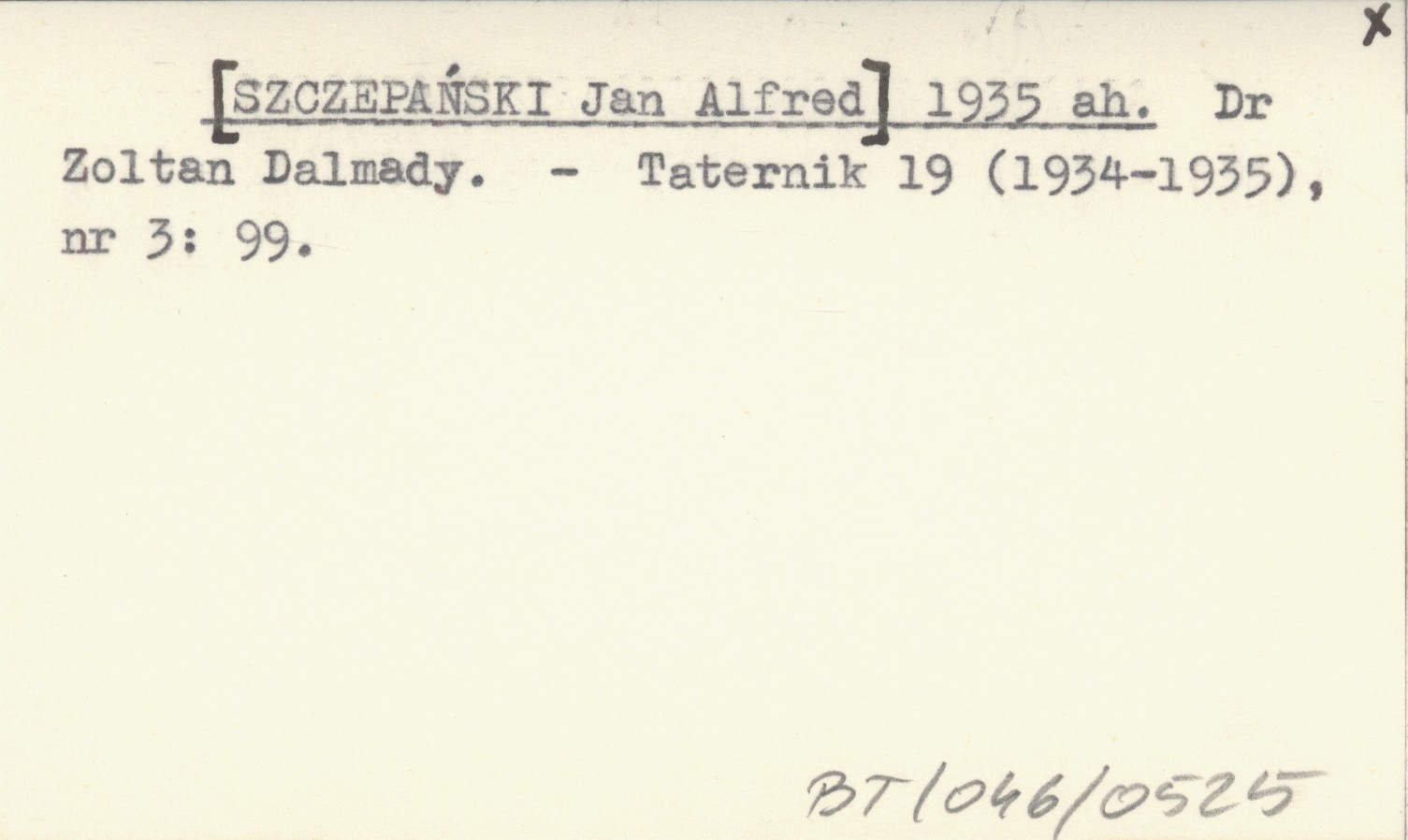 [SZCZEPAŃSKI Jan Alfred] 1935 ah Dr Zoltan Dalmady.