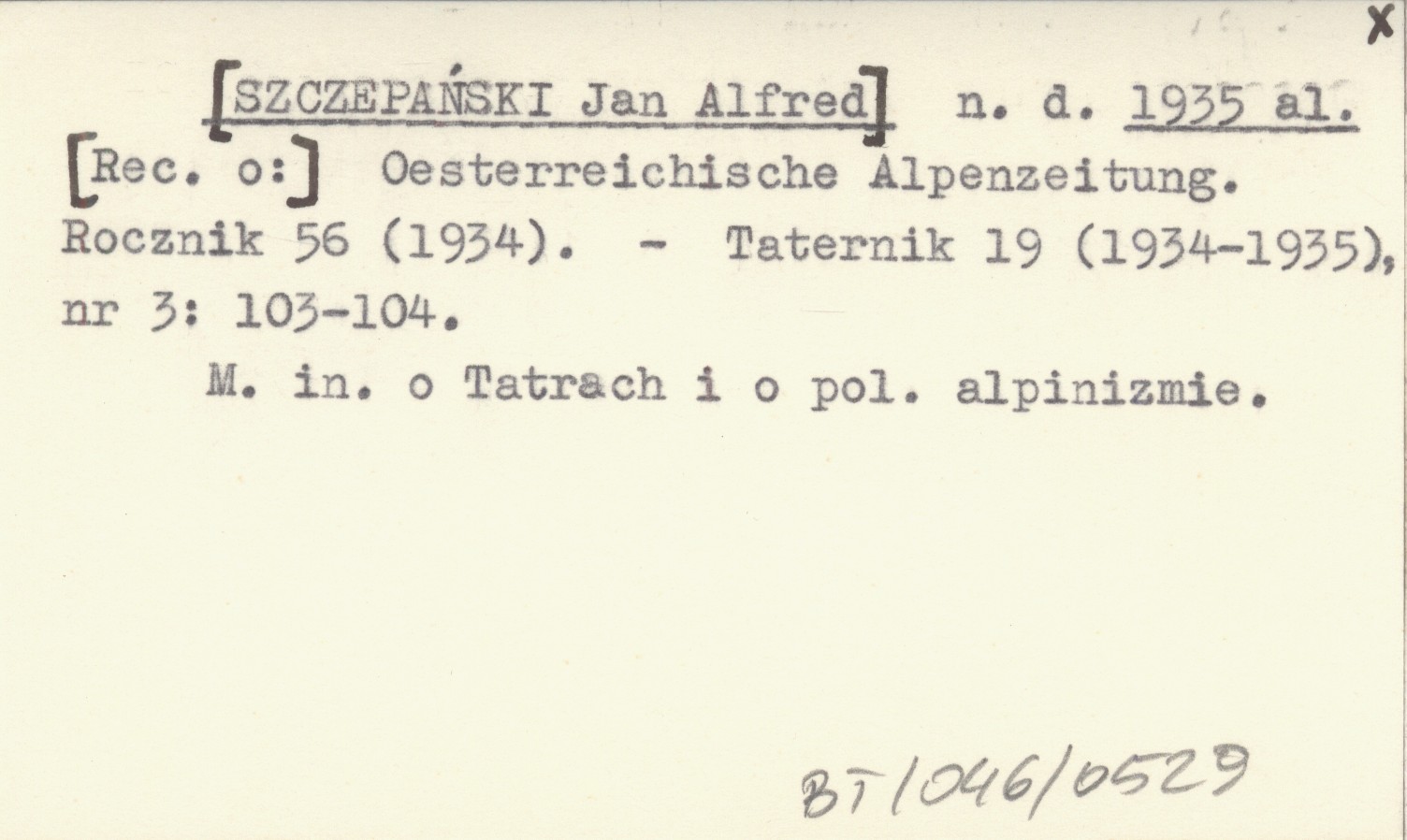 n. d. [SZCZEPAŃSKI Jan Alfred] 1935 al [Rec. o:] Österreichischen Alpenzeitung. R. 56 (1934).