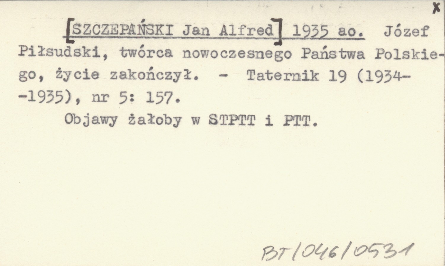 [SZCZEPAŃSKI Jan Alfred] 1935 ao Józef Piłsudski, twórca nowoczesnego Państwa Polskiego, życie zakończył.