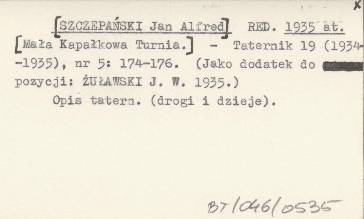 Taternik, 19 (1934-1935), nr 5: 174-176. Opis taternicki (drogi i dzieje). Jako dodatek do pozycji: ŻUŁAWSKI J. W. 1935.