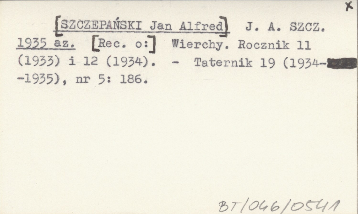 J. A. SZCZ. [SZCZEPAŃSKI Jan Alfred] 1935 az [Rec. o:] Wierchy. R. 11 (1933) i 12 (1934).