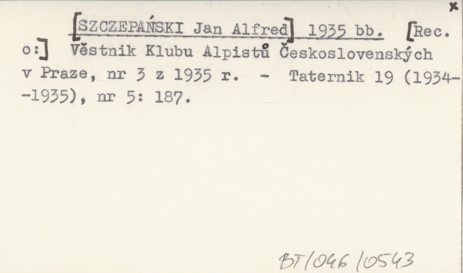 [SZCZEPAŃSKI Jan Alfred] 1935 bb [Rec. o:] Věstnik Klubu Alpistů Československých v Praze, nr 3 z 1935 r.