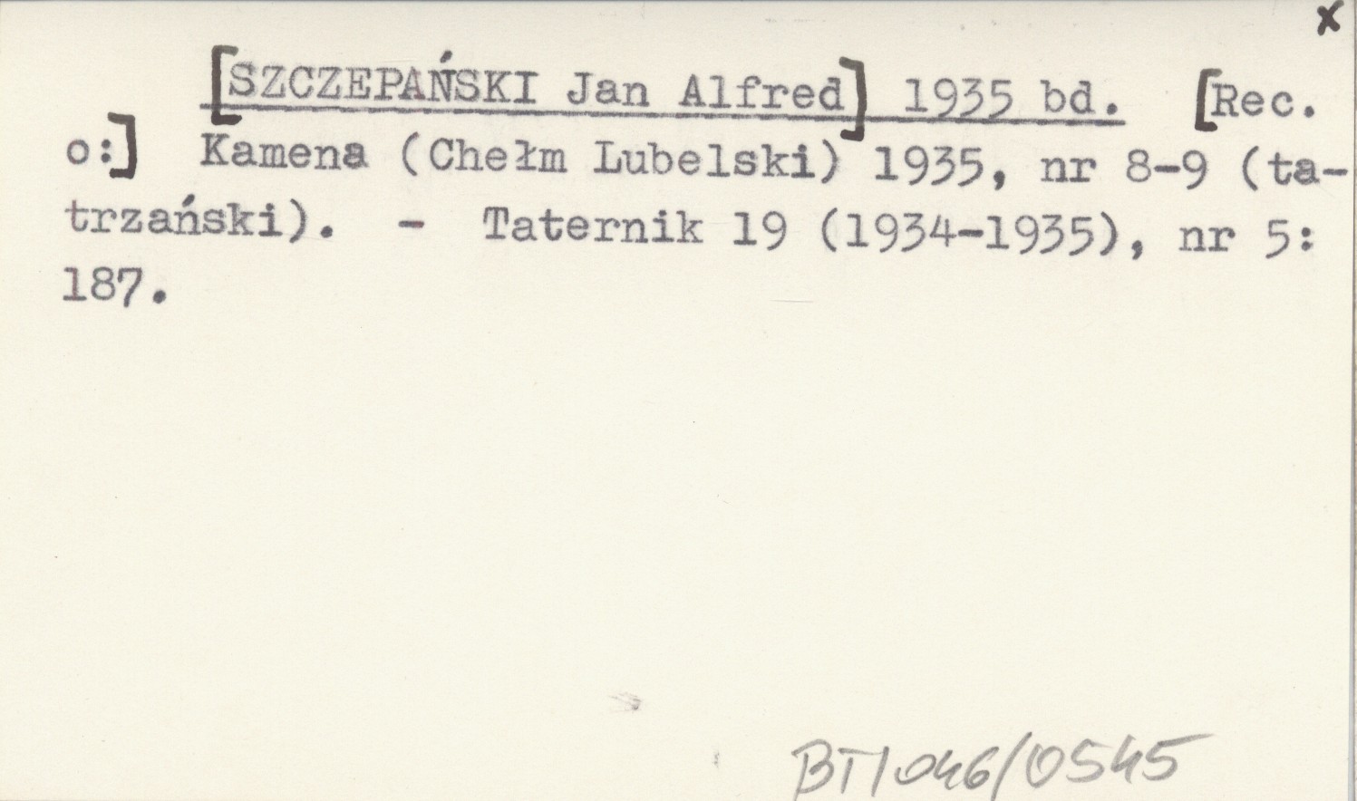 [SZCZEPAŃSKI Jan Alfred] 1935 bd [Rec. o:] Kamena (Chełm Lubelski) 1935, nr 8-9 (tatrzański).