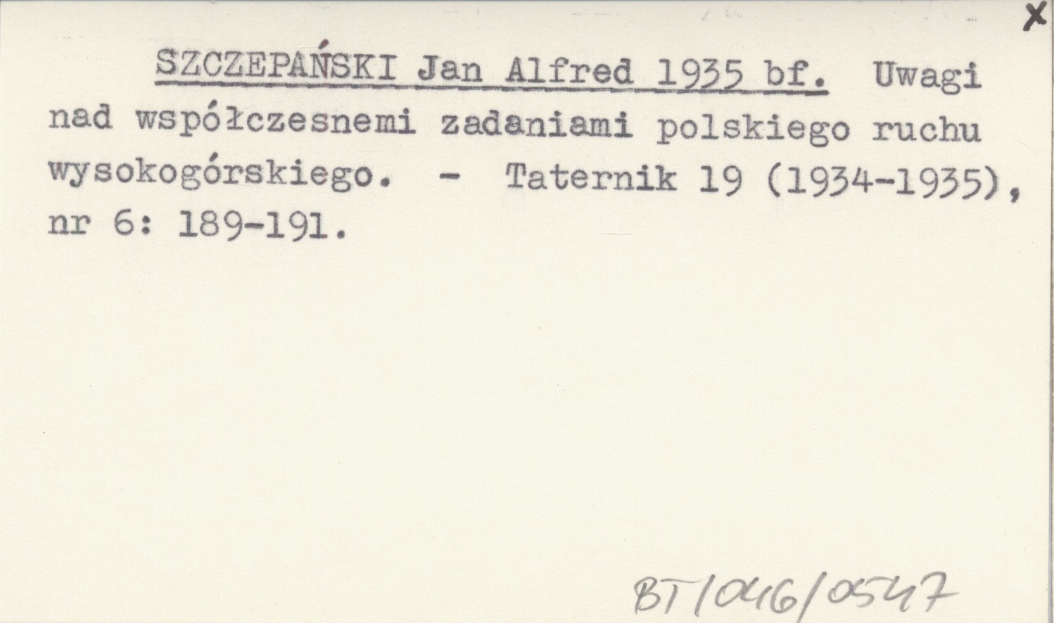 SZCZEPAŃSKI Jan Alfred 1935 bf Uwagi nad współczesnemi zadaniami polskiego ruchu wysokogórskiego.