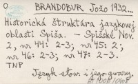 BRANDOBUR Jožo 1932... Historická štrukturá jazykovej oblasti Spiša.