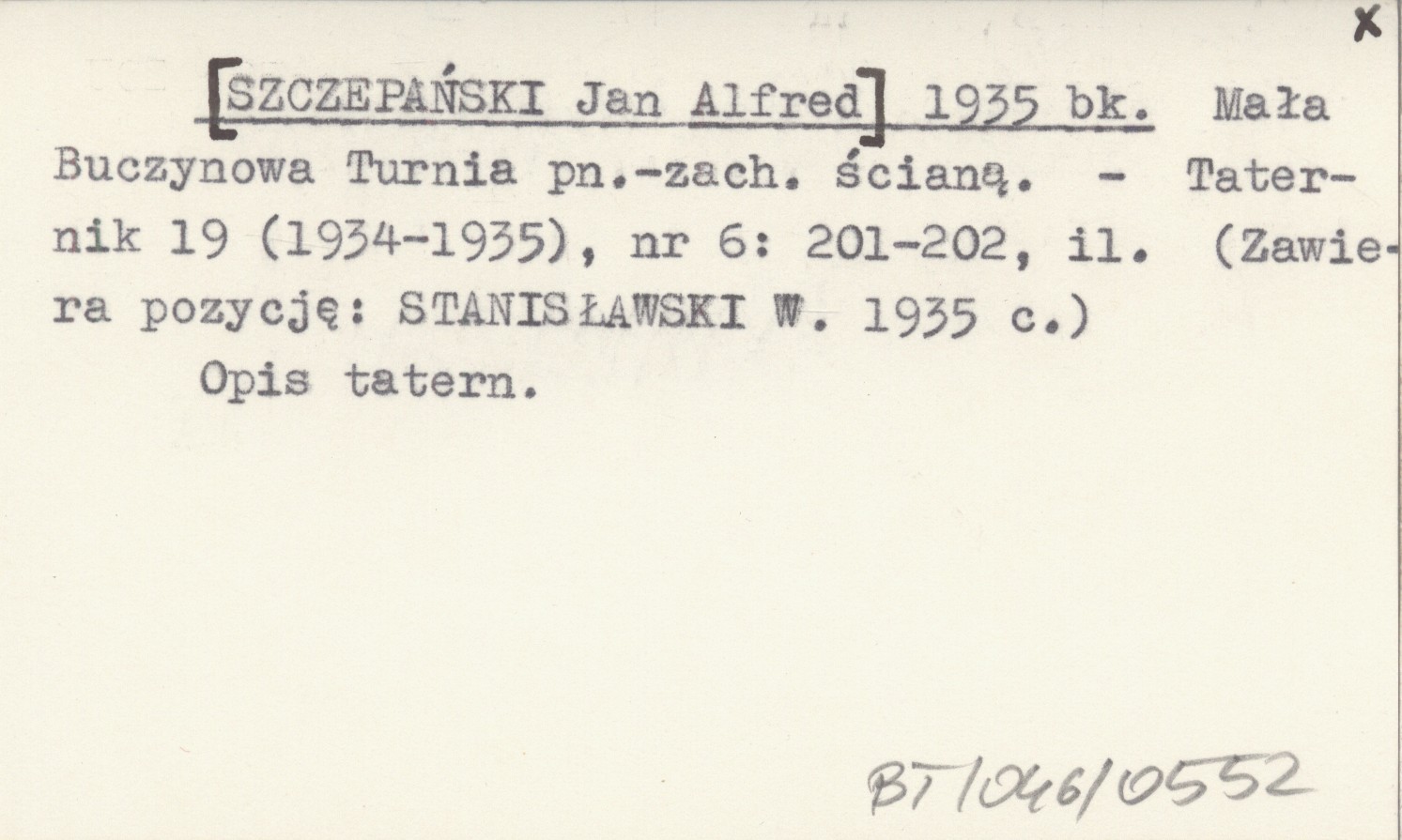 [SZCZEPAŃSKI Jan Alfred] 1935 bk Mała Buczynowa Turnia pn.-zach. ścianą.