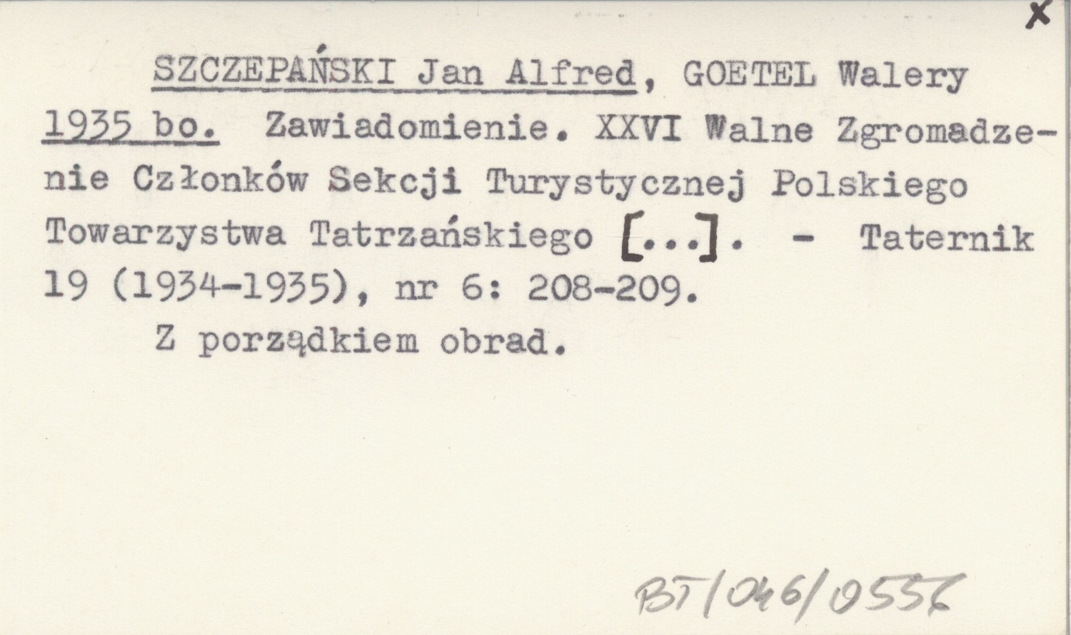 SZCZEPAŃSKI Jan Alfred GOETEL, Walery. ; 1935 bo Zawiadomienie. XXVI Walne Zgromadzenie Członków Sekcji Turystycznej Polskiego Towarzystwa Tatrzańskiego [...].