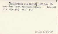 [SZCZEPAŃSKI Jan Alfred] 1935 bs Na powstanie Klubu Wysokogórskiego.