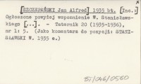 [SZCZEPAŃSKI Jan Alfred] 1935 bt [Inc.:] Ogłoszone powyżej wspomnienie W. Stanisławskiego [...].
