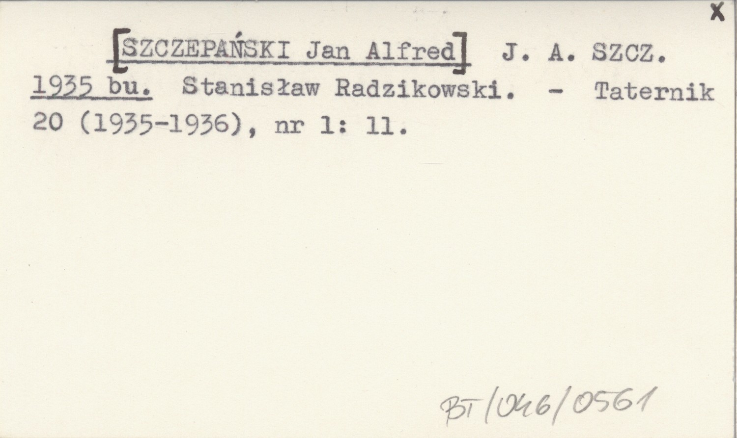 J. A. SZCZ. [SZCZEPAŃSKI Jan Alfred] 1935 bu Stanisław Radzikowski.