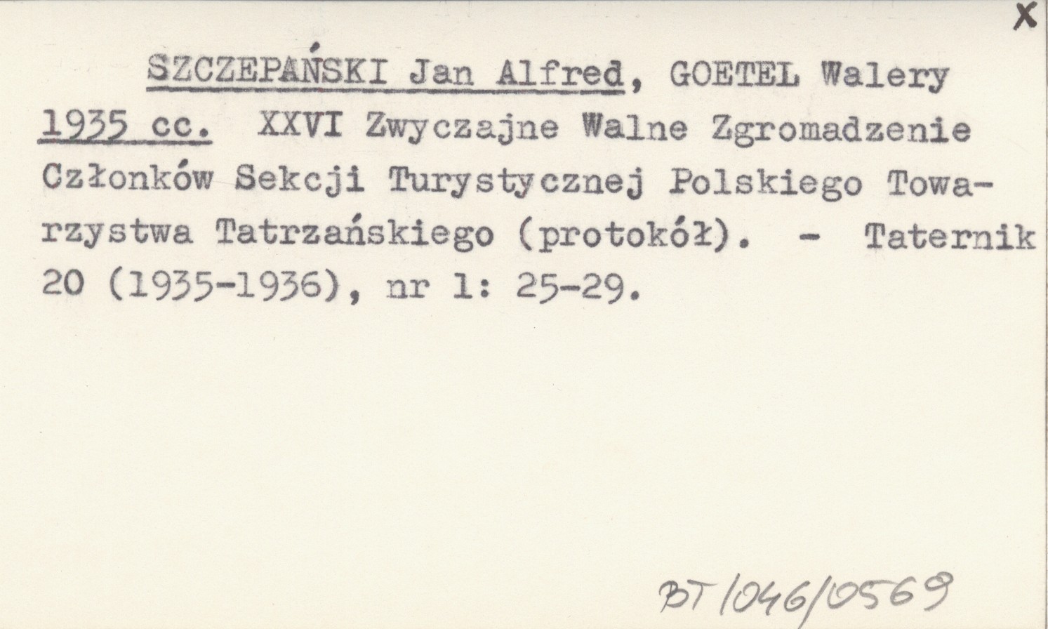 SZCZEPAŃSKI Jan Alfred GOETEL, Walery. ; 1935 cc XXVI Zwyczajne Walne Zgromadzenie Członków Sekcji Turystycznej Polskiego Towarzystwa Tatrzańskiego (protokół).