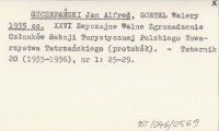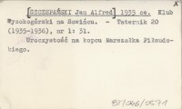 [SZCZEPAŃSKI Jan Alfred] 1935 cb Sprawy Klubu. W dniu 22 września b.r. przestała istnieć Sekcja Turystyczna P.T.T., [...] powstał Klub Wysokogórski PTT.