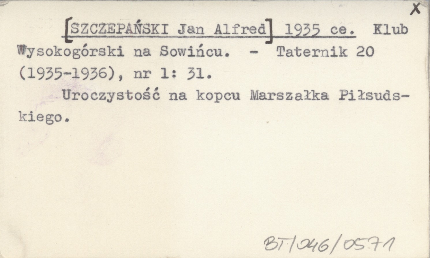 [SZCZEPAŃSKI Jan Alfred] 1935 ce Klub Wysokogórski na Sowińcu.