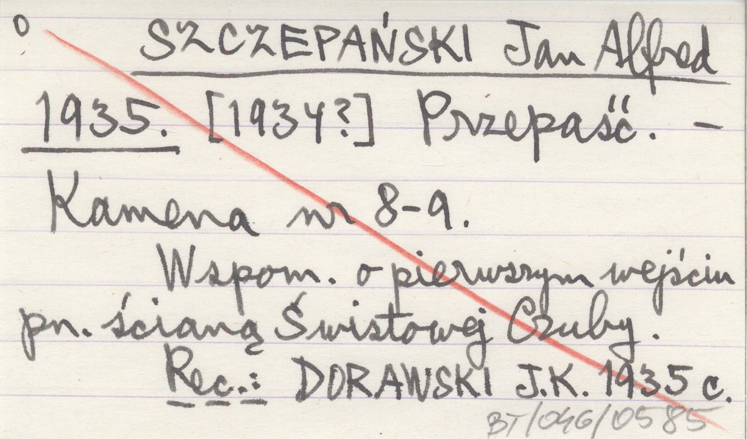 Kamena, Nr 8-9. Wspomnienie o pierwszym wejściu pn. ścianą Świstowej Czuby. REC: DORAWSKI J. K. 1935 c